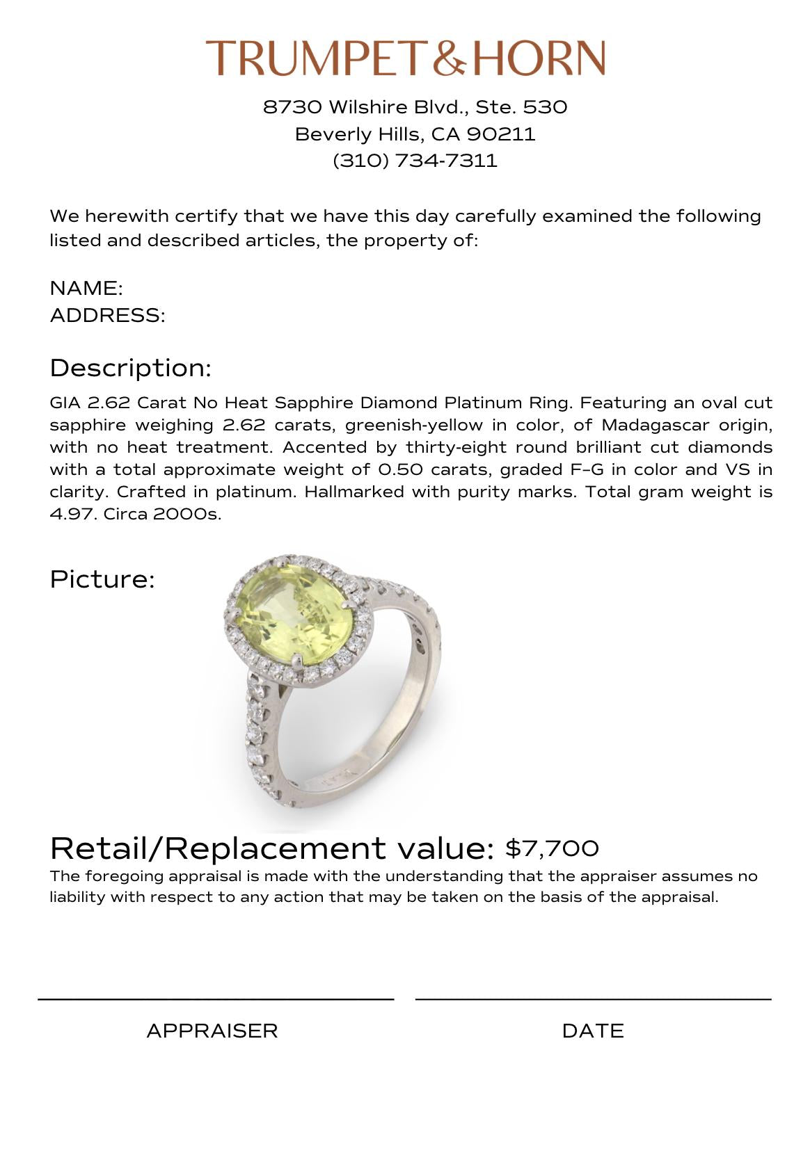 GIA 2.62 carats no heat sapphire diamond platinum ring