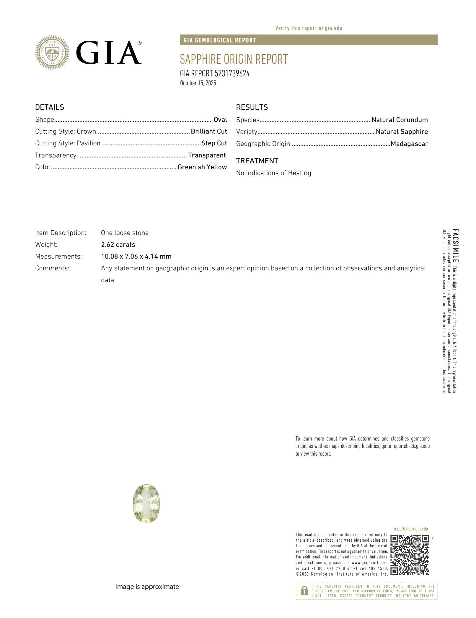 This striking sapphire and diamond ring showcases a rare and captivating greenish-yellow sapphire, certified by GIA and left entirely unheated, preserving its natural color and character. The oval cut center stone displays luminous depth and subtle tonal shifts, offering an uncommon alternative to traditional blue sapphires while maintaining a refined and sophisticated presence.