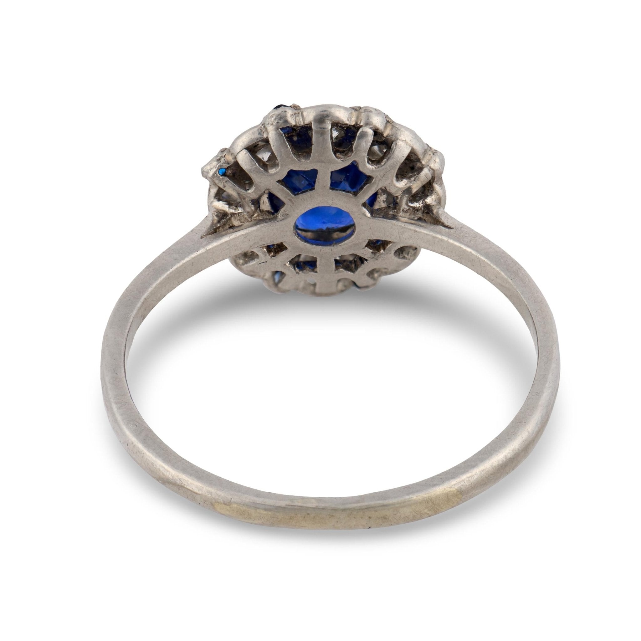 Mid Century sapphire diamond platinum cluster ring