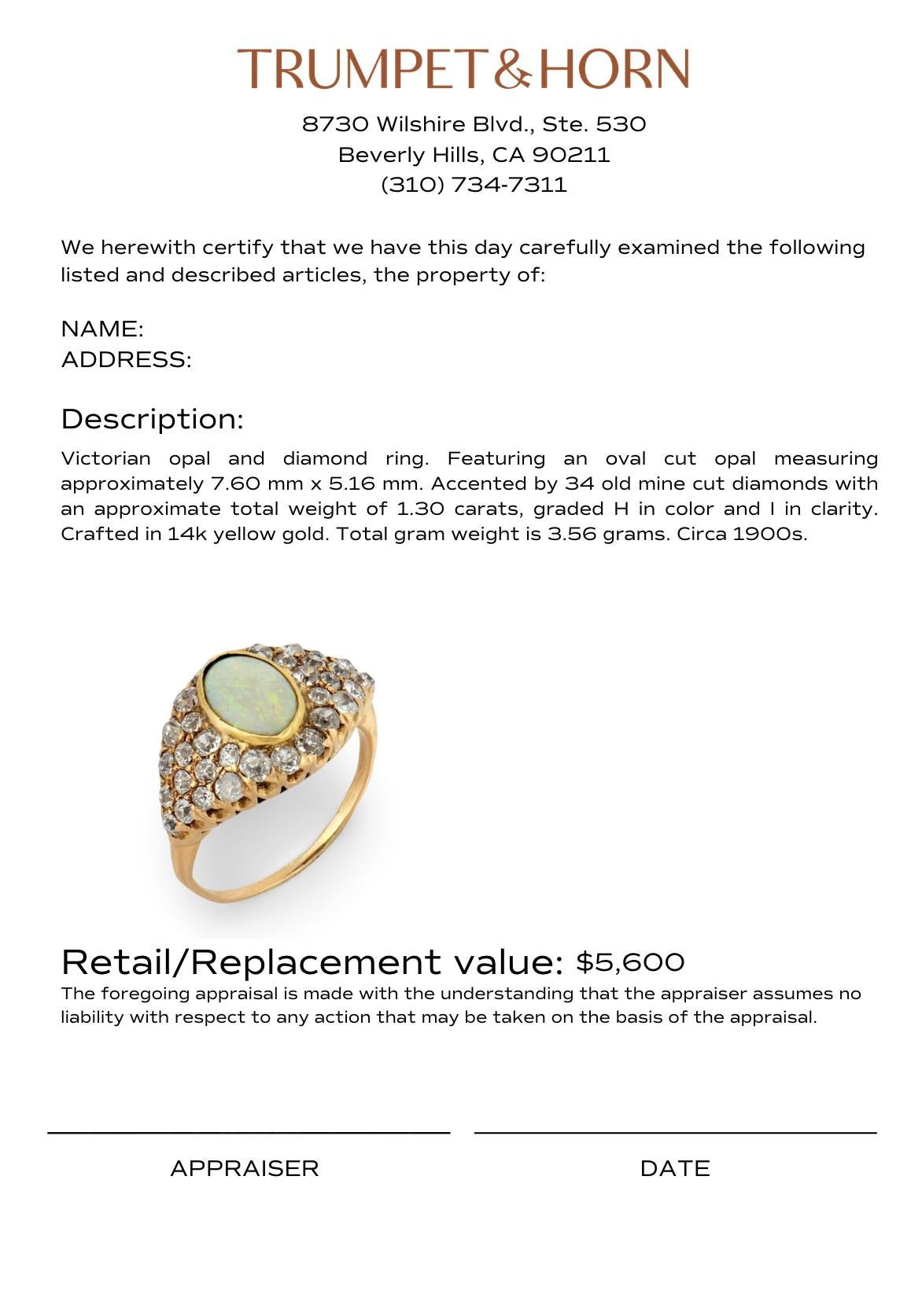 Victorian opal diamond 14k yellow gold ring