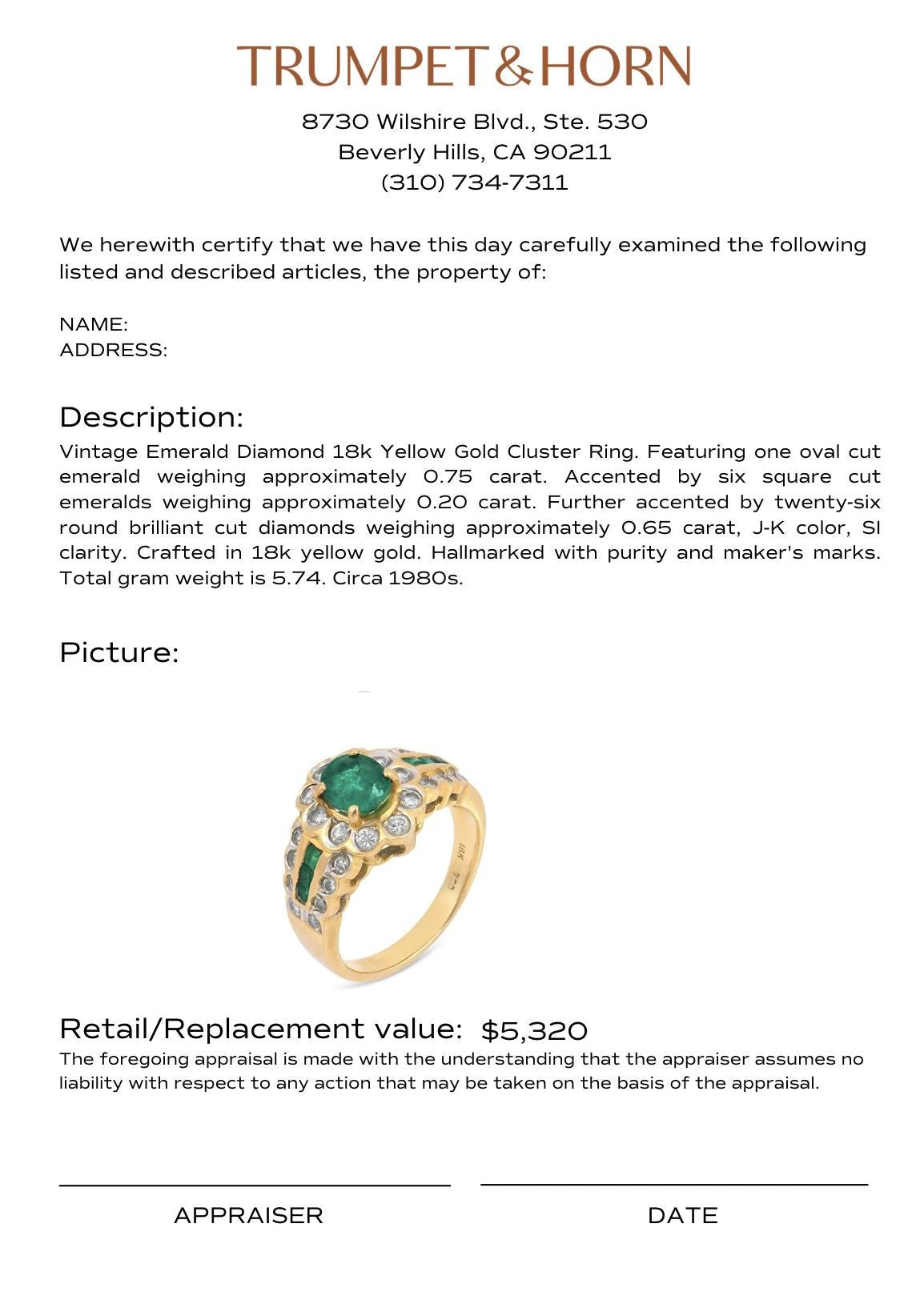 Vintage emerald diamond 18k yellow gold cluster ring
