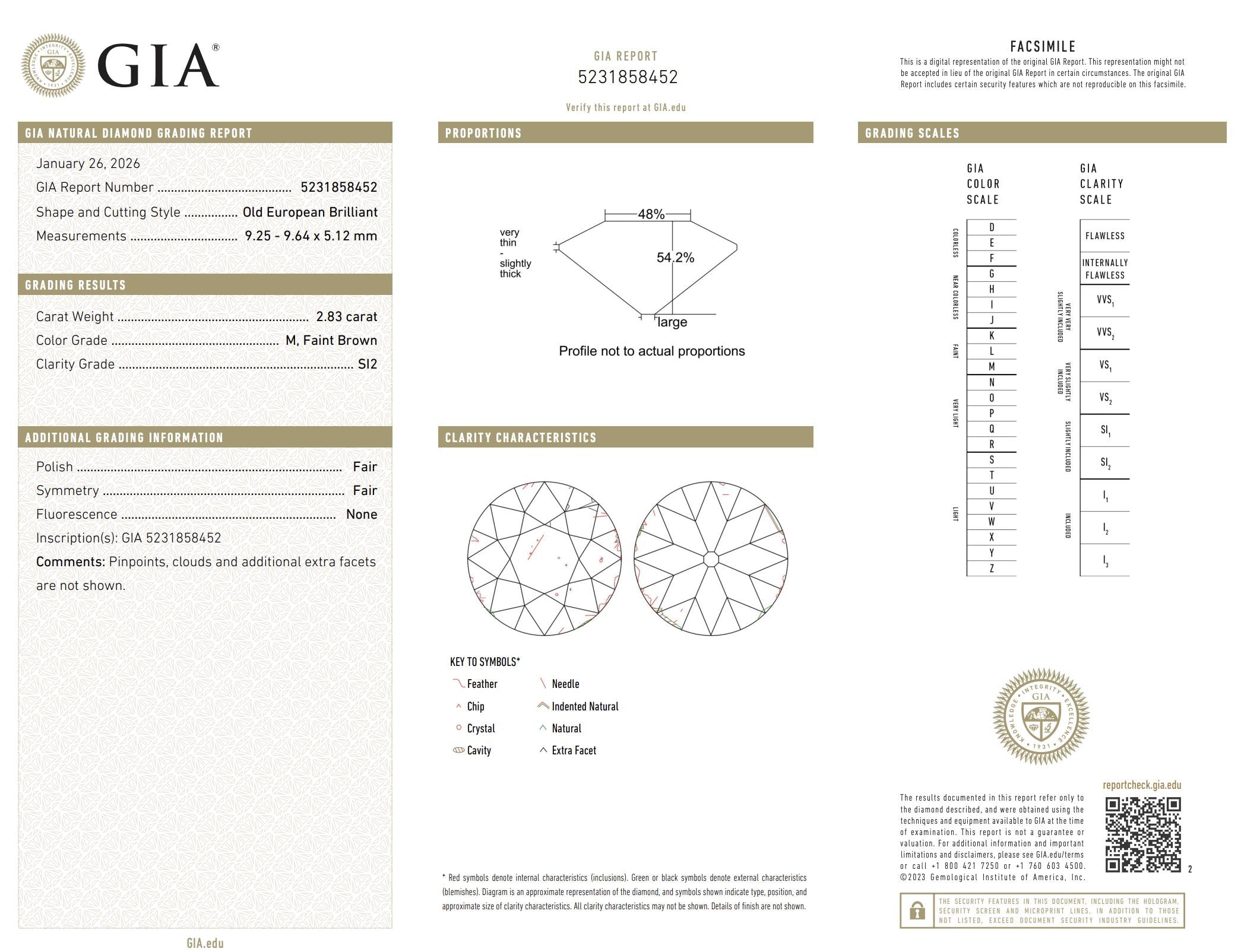 Retro GIA 2.83 carat Old European cut diamond platinum engagement ring