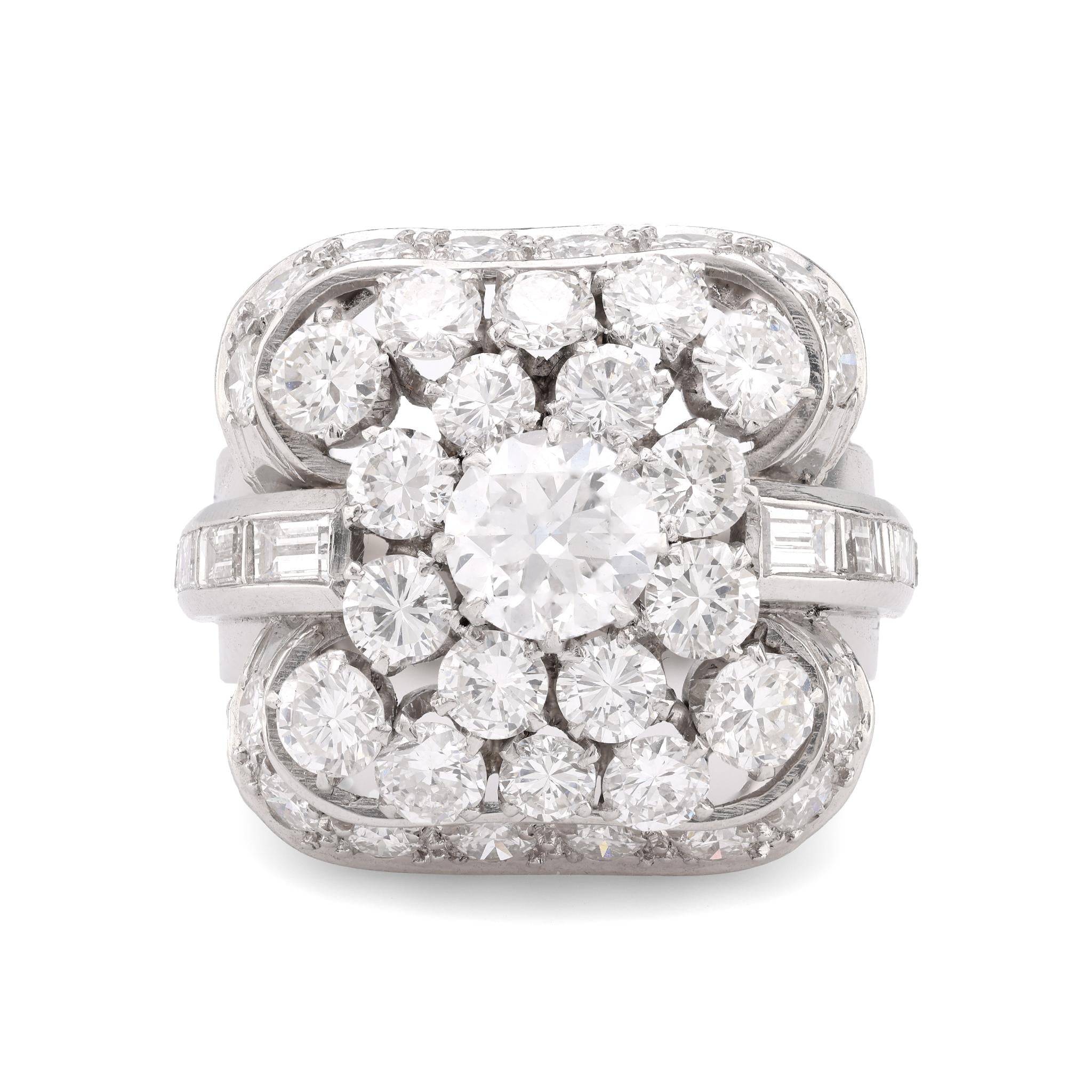 Mid Century 6.5 carat total weight diamond platinum cocktail ring