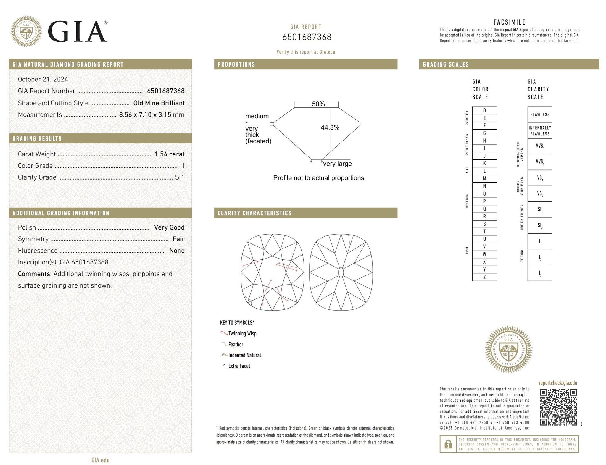 GIA 1.54 carat old mine cut diamond 18k gold engagement ring