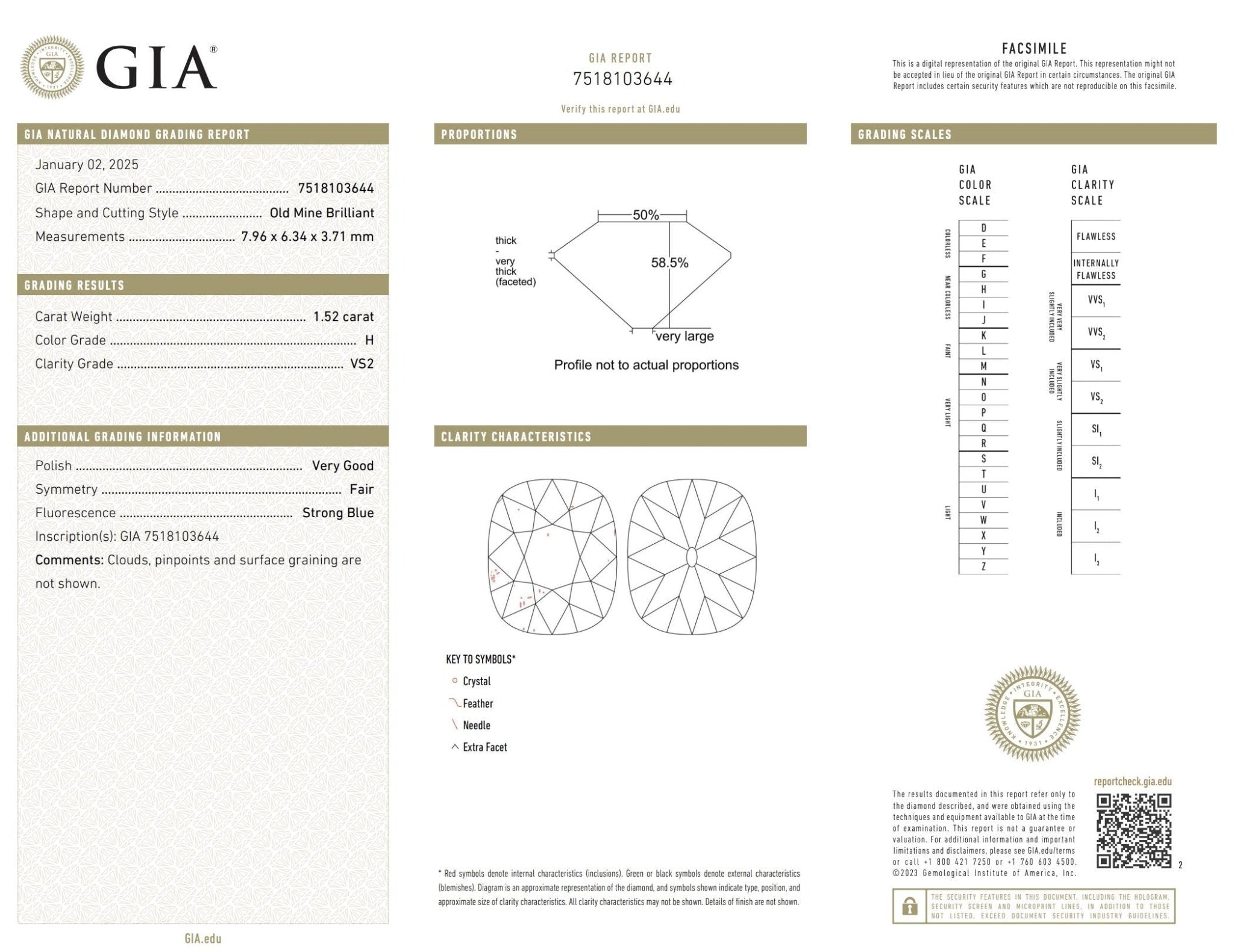 A modern 18k white gold engagement ring featuring a 1.52 carat GIA old mine brilliant cut diamond with a VS-clarity accent stone.Rings in our T&H Exclusive collection are thoughtfully recreated from vintage favorites we've loved, using vintage materials wherever possible.