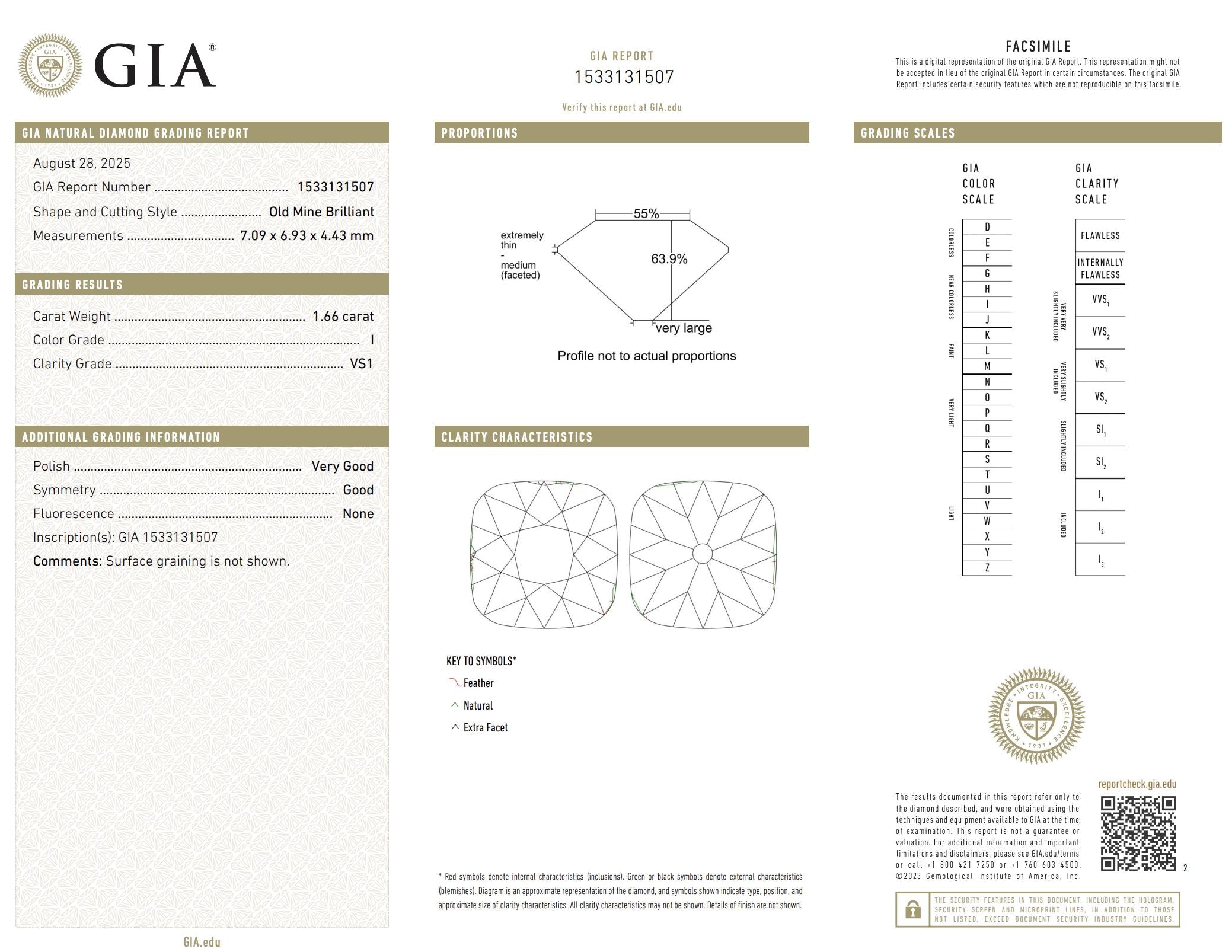 A modern 18k yellow gold engagement ring featuring a 1.66 carat GIA old mine brilliant cut diamond.Rings in our T&H Exclusive collection are thoughtfully recreated from vintage favorites we've loved, using vintage materials wherever possible.