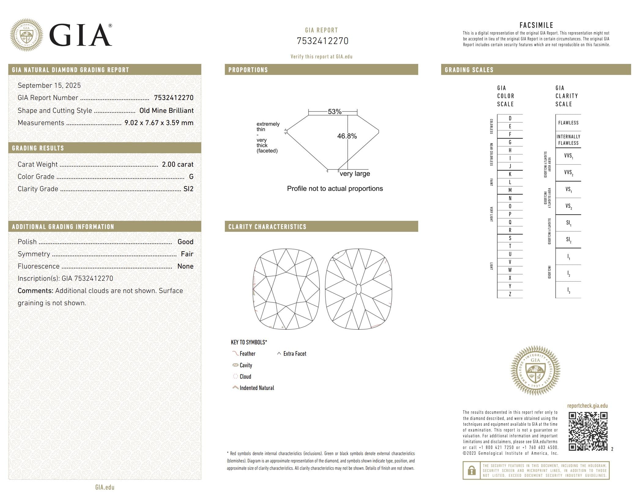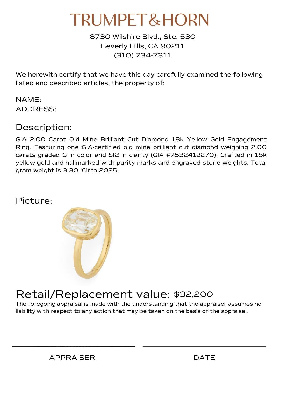 A modern 18k yellow gold engagement ring featuring a 2.00 carat GIA old mine brilliant cut diamond.Rings in our T&H Exclusive collection are thoughtfully recreated from vintage favorites we've loved, using vintage materials wherever possible.
