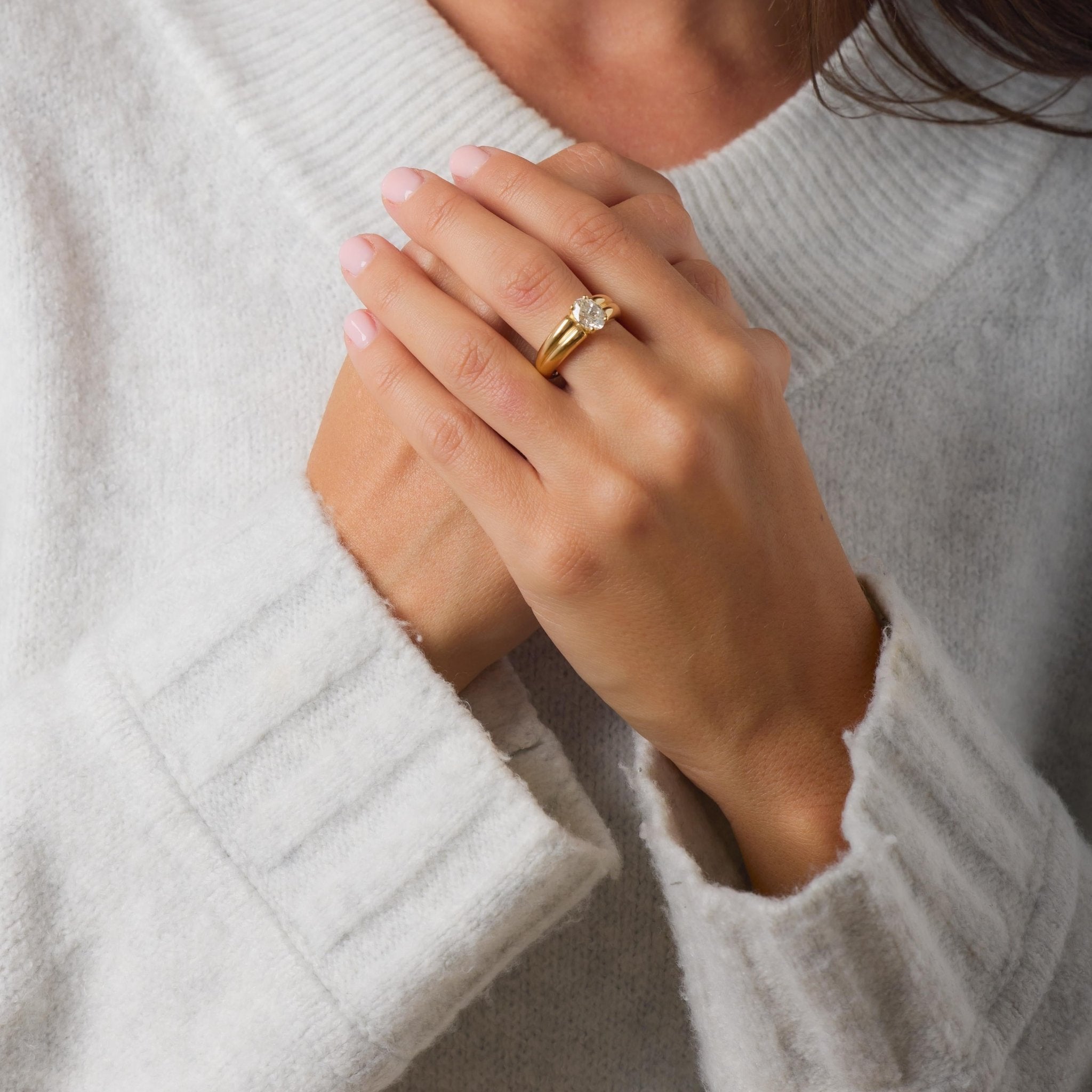 Dating to the 1990s, this ring carries a quiet confidence—rooted in traditional design yet unmistakably elegant. With its certified diamond, rich gold construction, and classic French styling, it is a compelling choice for someone drawn to vintage character, warmth, and enduring beauty.