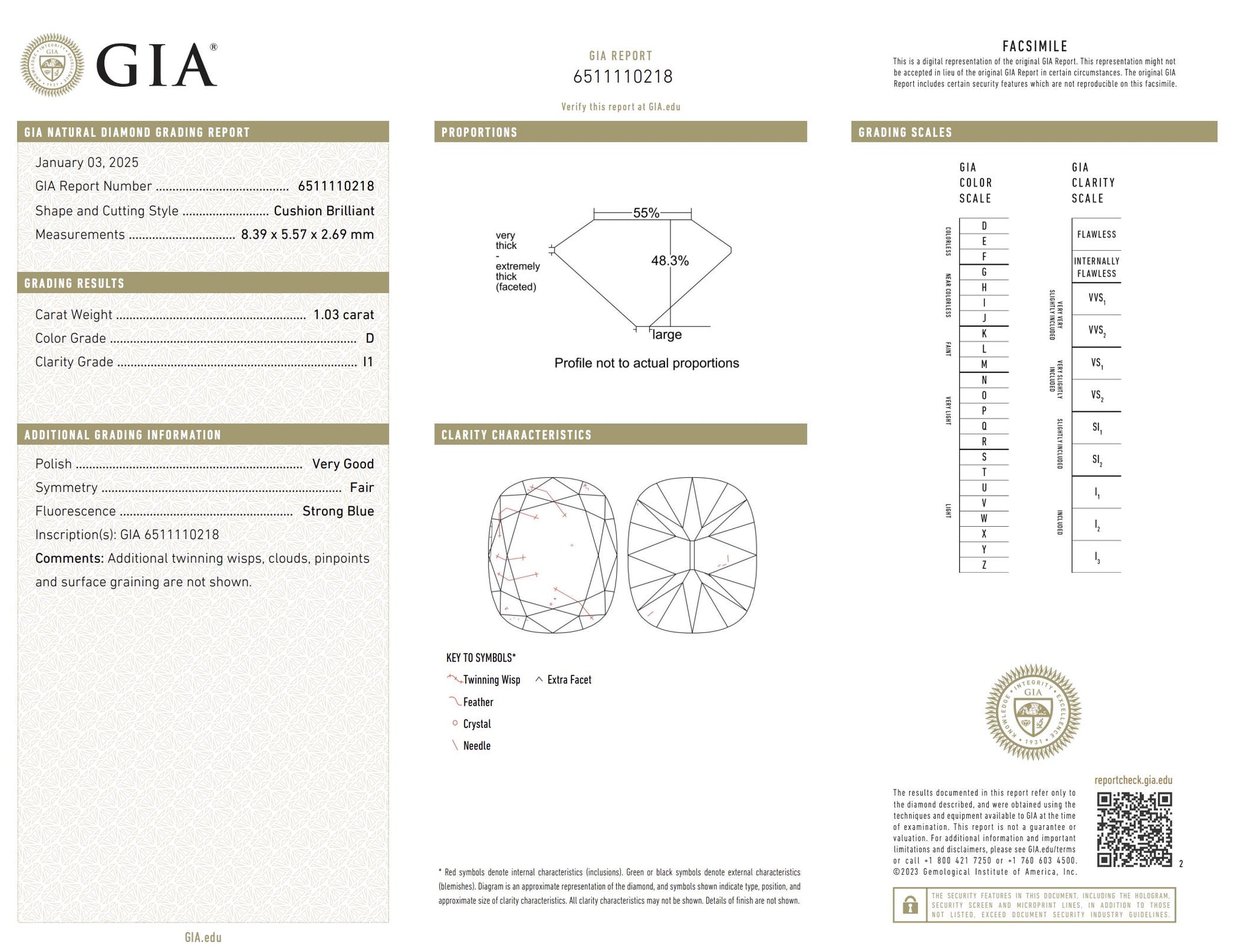 | Clarity Grade | Included (I1)Very Slightly Included (VS1) |