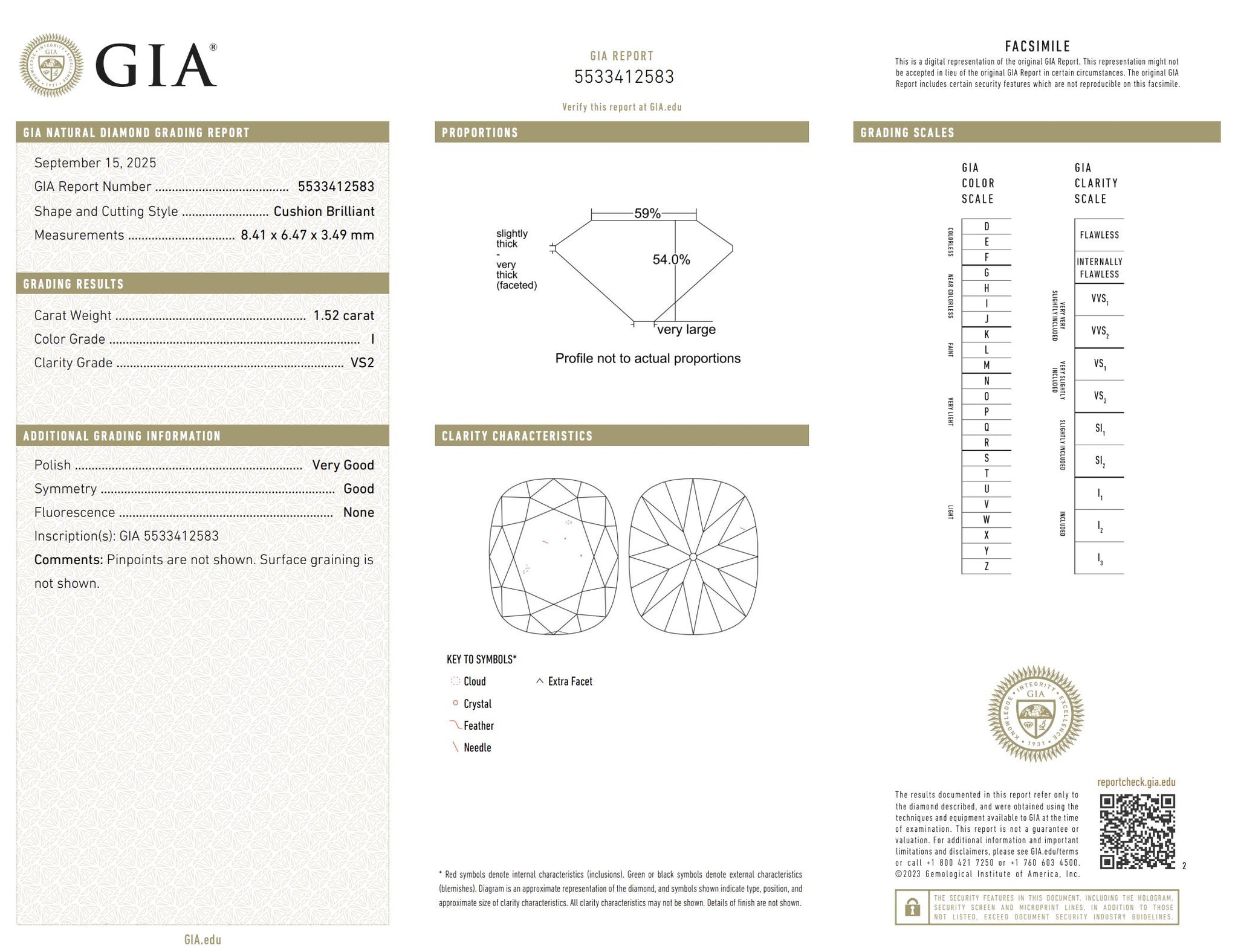 | Clarity Grade | Very Slightly Included (VS2)Very Slightly Included (VS1) |