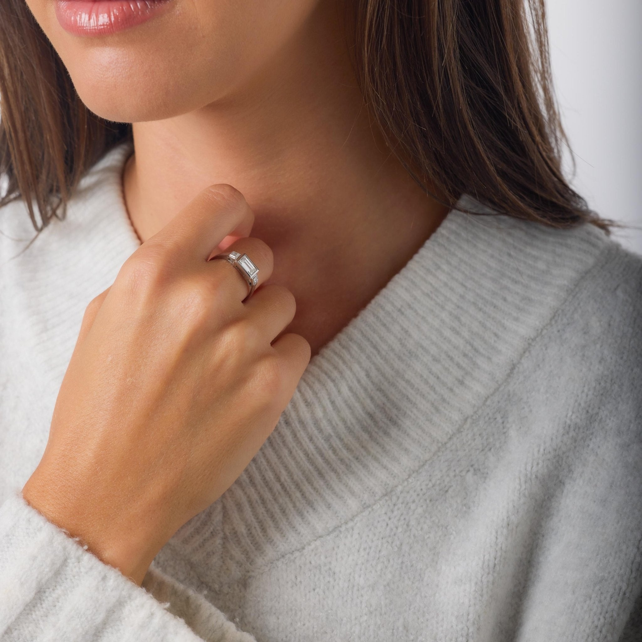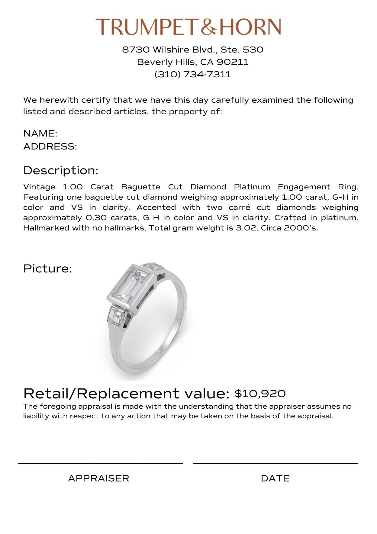 Vintage 1.00 carat baguette cut diamond platinum engagement ring