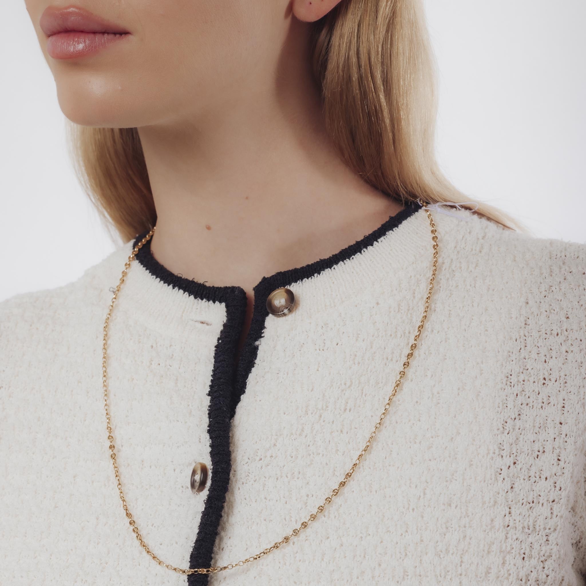 A sleek vintage 18k yellow gold necklace measuring 28 inches, offering timeless elegance and versatile wear for layering or standalone sophistication.
