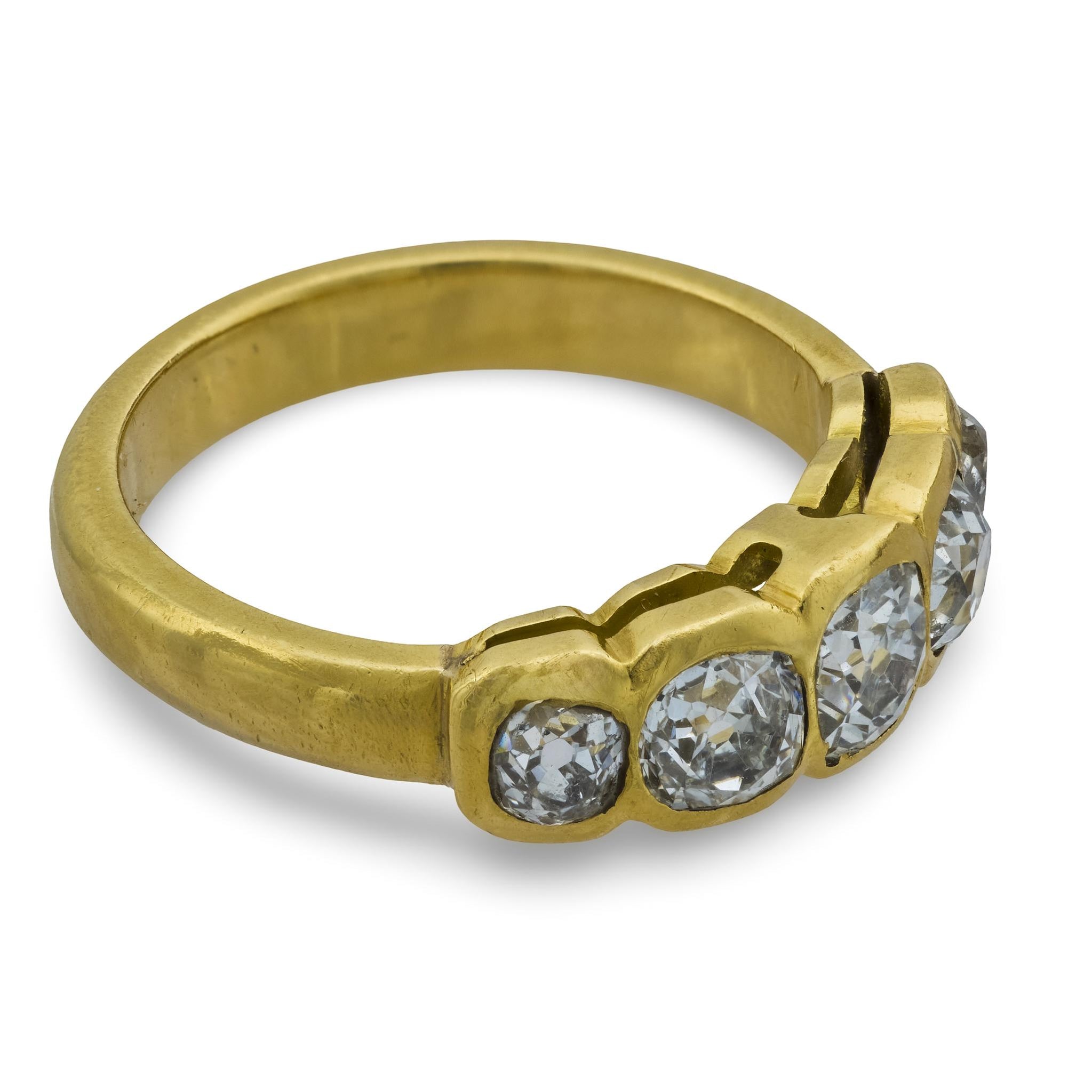 Vintage Italian 1.80 carat old mine cut diamond 18k yellow gold five stone band